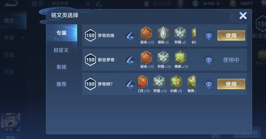铭文的搭配推荐使用梦魇、心眼和狩猎这类铭文组合,它们能提供法术攻击和穿透效果让你的技能伤害更显著。如果选择物理输出方向则可以考虑夺翠、鹰眼和无双的组合这样能提升暴击和物理吸血效果确保在野区战斗时能维持生命值。对于半肉玩法则可能需要宿命、调和和虚空来增加生命值与防御力让梦奇在前中期更耐打。