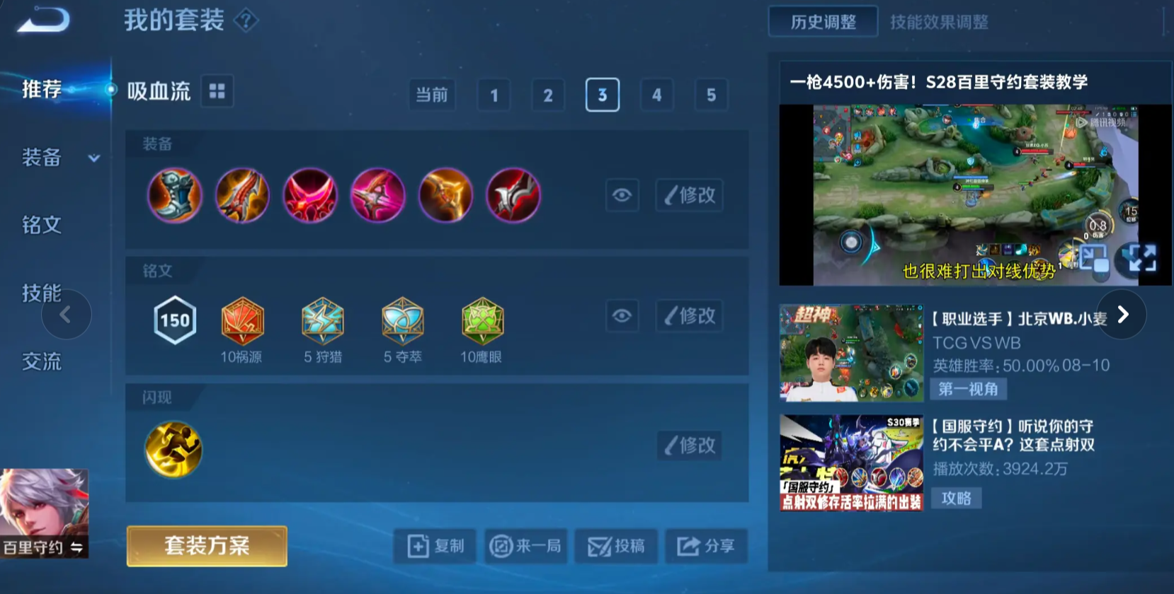 铭文的搭配,异变、鹰眼和隐匿是常见组合,它们能堆叠物理攻击和穿透,强化前期伤害。百里守约的技能机制决定了他不依赖暴击和攻速,所以铭文应专注于固定属性加成,比如物理攻击力和物理穿透。百里守约需要注意技能的使用时机,比如二技能狙击前要预判敌人走位,瞄准时尽量满蓄力以确保命中率。利用一技能布置视野,占据安全位置进行狙击。