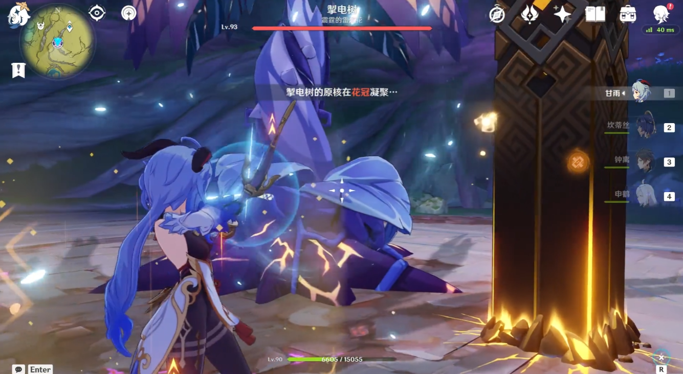 掣电树的战斗机制主要围绕两种花蕊展开,一种是黄色的盈极花蕊,另一种是紫色的虚极花蕊,当BOSS处于黄色状态时,地上会出现盈极花蕊,而当它转为紫色状态时,则会生成虚极花蕊,这两种花蕊需要用火元素攻击去快速破坏掉。如果玩家没能及时清理花蕊,让它们同时存话,它们会互相吸引碰撞,引发强大的电荷爆破,这个技能伤害非常高,很容易让角色一不小心就倒下,所以一定要优先处理花蕊,这样才能避免不必要的危险。一旦花蕊被破坏,掣电树会暴露出头部的雷元素核心,这时继续用火元素攻击核心,可以削减它的能量条,能量条清空后BOSS就会进入瘫痪状态,这时候就是输出的绝佳机会了。能量条是继承的,所以连续攻击核心能更快触发瘫痪。