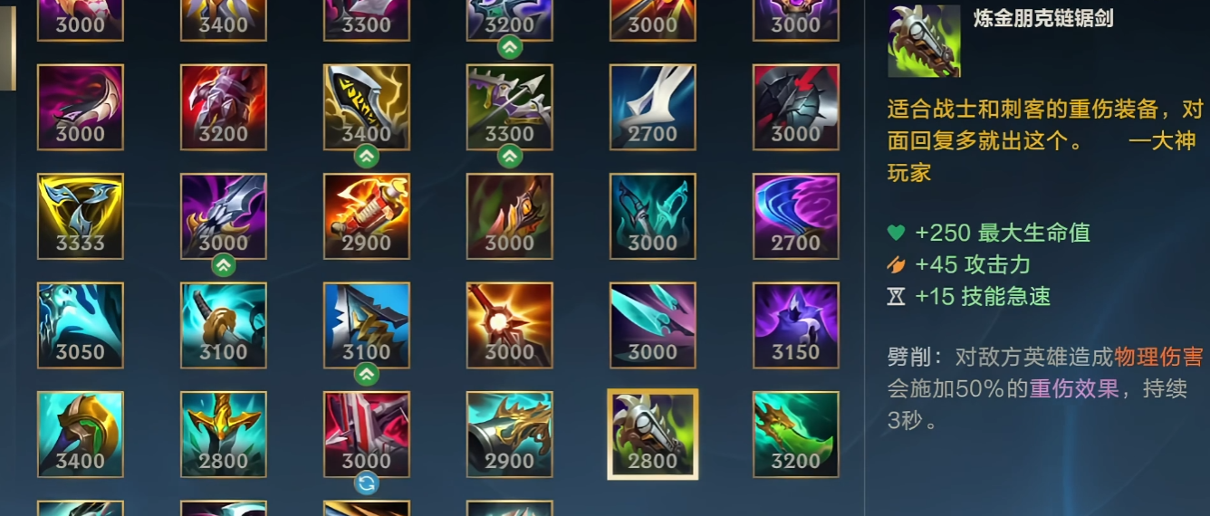 首先专门用来遏制回血的装备,通常会提供一个叫做重伤的效果。重伤效果就是能大幅降低目标受到的治疗和回复效果,比如本来一个技能能回200血,中了重伤可能就只能回100血甚至更少。首先是给物理系英雄用,凡性的提醒和死刑宣告。凡性的提醒属性比较全面,加了攻击力、攻速和暴击,它的被动效果很直接,普攻或者技能打中敌方英雄,就能让他挂上一个持续几秒的重伤效果,减少他的治疗效果,非常适合依赖普通攻击持续输出的射手。
