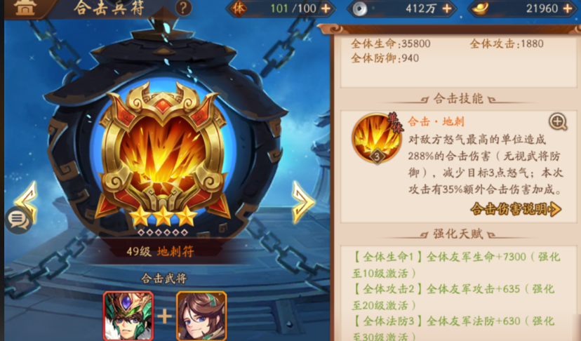 兵符和装备搭配对发挥暗金吕布的潜力至关重要,首选地刺符能在关键时刻提供伤害加成,次选星宿符则通过恢复与护盾机制弥补续航短板,两者组合还能激活暗金兵符图鉴的额外属性加成。战魂养成方面优先镶嵌暴击增幅和速度提升类战魂,装备选择暗金套装以强化攻击和暴击属性,确保吕布的输出能力最大化。