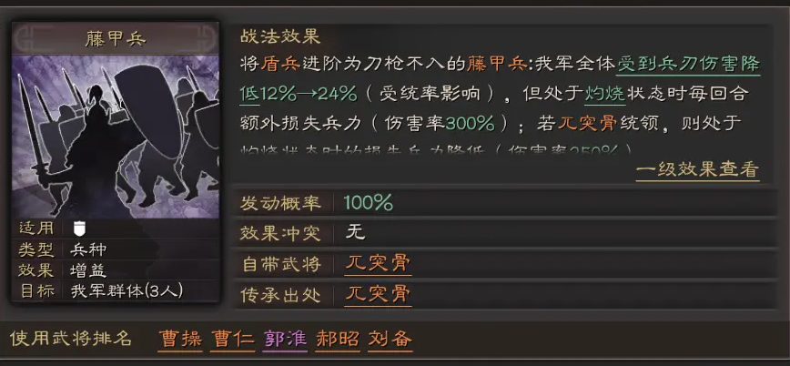 尽管盾兵防御强劲,但面对火攻类战法和骑兵克制时需谨慎部署,火攻能直接穿透防御机制造成额外伤害,尤其当敌方携带陆逊或周瑜等武将时,盾兵的藤甲兵效果会大幅削弱。控制类战法如技穷和伪报也是盾兵的天敌,它们能封锁主动战法释放或禁用指挥效果,导致队伍输出和防御能力下降。骑兵兵种对盾兵有天然优势,其高机动性和爆发伤害能快速突破防线,例如吕布或马超等武将能在短时间内打出高额伤害。使用盾兵时应优先侦察敌方阵容,避免与火攻或骑兵队伍正面交锋,并通过搭配草船借箭等解控战法来缓解控制压力。