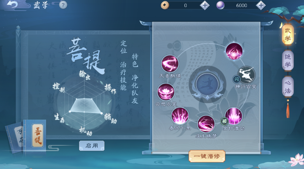 菩提流派的加点则应以治疗量和生存能力为核心,推荐将50%点数分配至防御属性,30%分配至攻击属性,剩余点数用于提升团队增益效果。具体技能加点顺序包括颂春谣、踏春行等提升治疗效率的天赋,而百花生日、风雨同舟可增强团队续航能力。在PVP中,菩提体系适用于防守,可以提供辅助治疗和持续生存,加点推荐为一层202、二层202、三层200、四层020、五层102,这有助于在对抗中保持稳定支援。装备搭配上,优先选择增加治疗量的词条,宠物技能则推荐治疗提成和会神类效果。