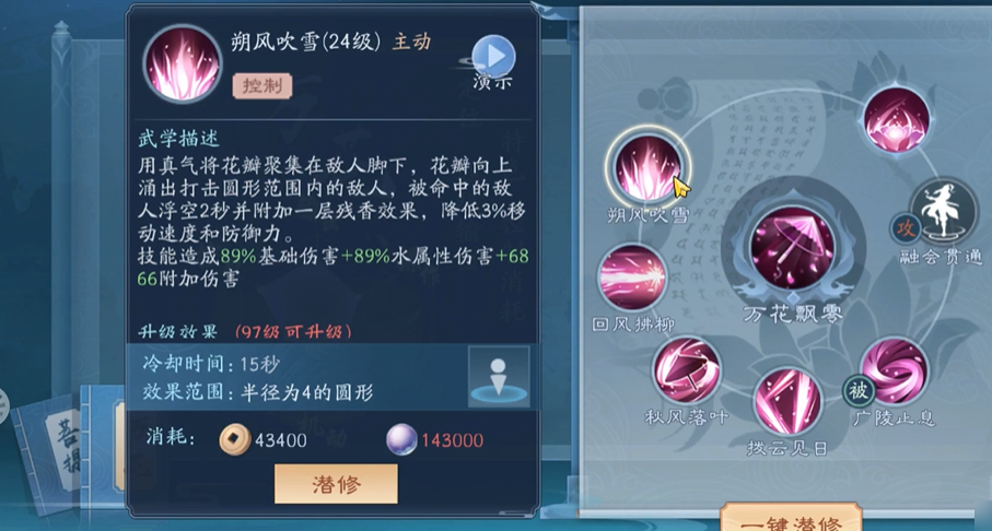 针对万花流派的加点,玩家应侧重攻击型心法,提升技能伤害与控制效果,关键天赋如朔风吹雪和拨云见日可以强化输出能力。在PVE环境中,万花加点推荐为一层210、二层012、三层200、四层020、五层102,这能优化范围伤害和控场效果;PVP场景下则需调整策略,优先选择增加伤害与控制的天赋,并搭配神行百变提升机动性。属性培养上,万花需要优先堆攻击和暴击,确保在战斗中能持续压制对手。