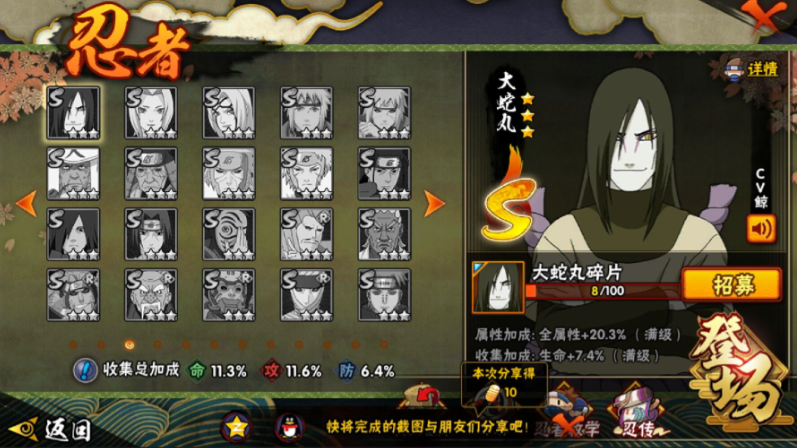 秘卷的携带也需精心考量,推荐选择除魔或风遁类的控制型秘卷,它们能与大蛇丸的远程抓取技能形成良好配合,提升起手成功率。通灵兽方面,蓝蛇或猿魔都是不错的伙伴,它们的多段攻击特性与大蛇丸的技能节奏天然契合,可以在连招过程中有效补充伤害输出。