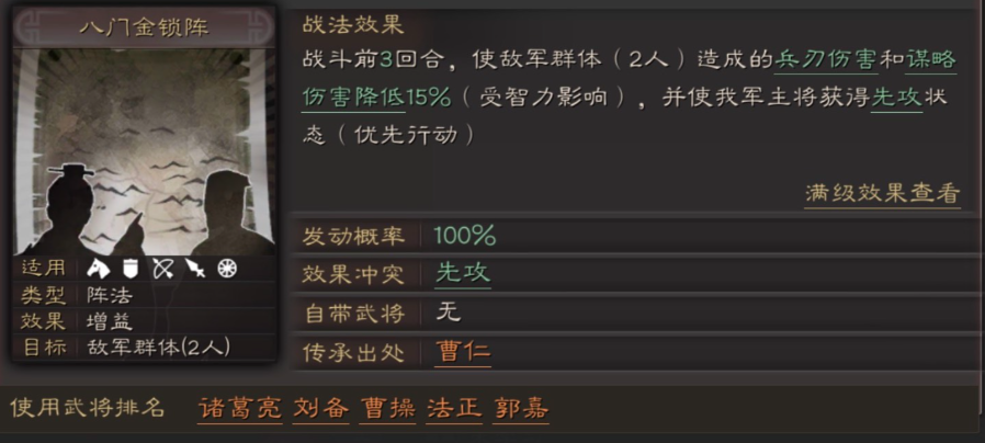 携带死士能有效优化开荒过程中的操作细节与战损控制。死士通常只需携带一个兵力,甚至满兵出战其主要作用也并非战斗,而是为了触发特定的指挥战法或兵种战法。让死士携带像陷阵营、八门金锁阵这样的战法,可以在战斗开始时为己方主力提供宝贵的增益状态或减伤效果,而这些效果与携带者的属性无关,只与战法等级有关。这样一来,玩家就能以极低的成本,让主力队伍在早期就获得中后期才可能拥有的高级战法辅助,显著提升队伍的生存能力和战斗稳定性。尤其是在攻击五级、六级这类资源地时,守军强度骤增,死士提供的额外战法效果往往成为决定胜负、降低兵损的重要因素。他就像是一个移动的战法工具人,用最小的资源代价换取了可观的战术优势。