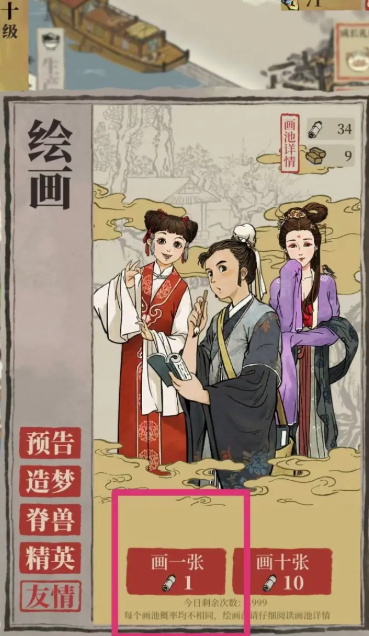 抽卡是获取宝物的核心方式之一,玩家可以使用补天石或金画轴在画池中进行抽奖,有机会直接获得高品质的珍宝。补天石可以通过完成各种任务、参与活动或充值获得,而金画轴则在日常游戏中逐步积累。抽奖过程具有一定的随机性,但长期坚持可以增加获得稀有宝物的概率,是玩家快速扩充宝物库存的主要手段。