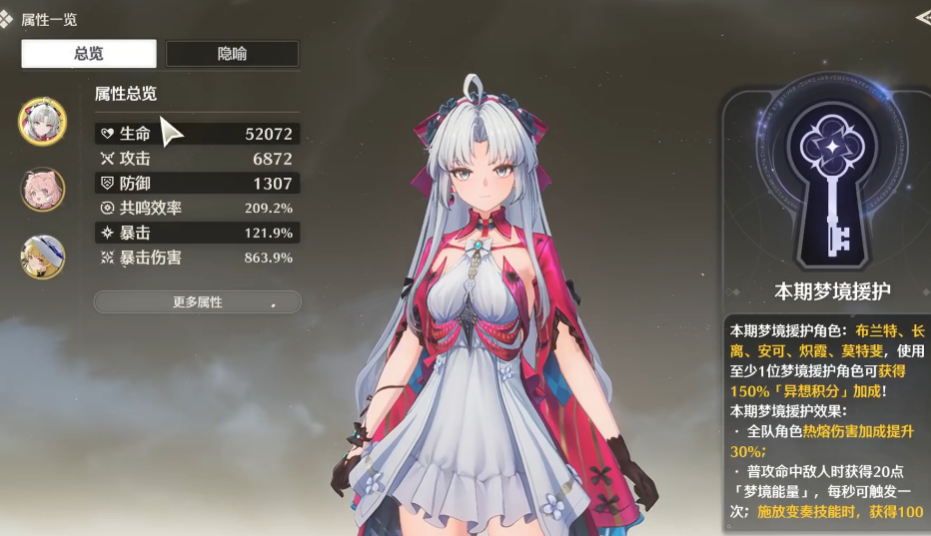 齿轮之心最适合的搭配是激越的残谱,这个组合能实现高额攻击力与永续明晰梦状态的共存,是在千道门扉的异想玩法中构建强力流派的核心。激活这个强力组合的关键在于获取顺序,你必须先拿到攻击力翻倍效果的激越的残谱,之后再选择齿轮之心。如果顺序颠倒,先拿了齿轮之心,它会将你的攻击力上限锁在1000以下,此时再拿激越的残谱也无法突破这个限制,会导致输出严重不足。只有在攻击翻倍效果生效后,再装备齿轮之心,才能让角色在保持翻倍后高攻击力的同时,进入无限持续的明晰梦强化状态。