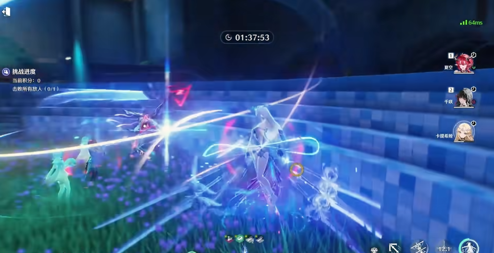 这个活动的核心玩法是在一个带有特殊增益效果的模拟领域中,连续挑战数个实力强劲的怪物。你的目标是在规定时间内击败它们,系统会根据你对怪物造成的总伤害来累积积分,积分越高,能领取的奖励也就越完整。对于新手而言,理解并利用好关卡提供的试用角色是快速上手的关键。活动通常会为你准备好一整套有搭配思路的试用角色队伍,比如卡提希娅、夏空和千咲的组合,你可以直接使用他们进行挑战,无需担心自己角色池的深度或练度问题。进入关卡后,核心思路就是灵活切换角色,打出有效的技能连招,并在合适的时机触发名为谐度破坏的特殊机制来激活强力增益,从而在时限内打出更高的伤害。