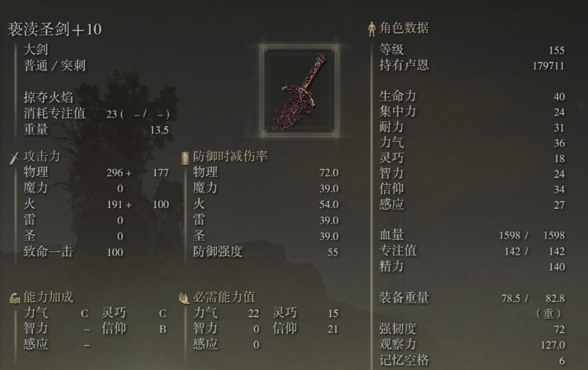 综合性能最为全面的选择之一是亵渎圣剑,其战技掠夺火焰在命中敌人时可以恢复自身生命值,面对群体敌人时治疗效果尤为显著,这套机制让你在长时间探索或连续战斗中大幅降低对血瓶的依赖,武器自身还具备高削韧与不错的范围伤害,能有效清理杂兵群。