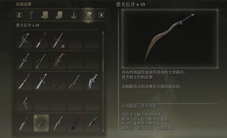 对于倾向力敏流派的玩家,猎犬长牙是一把极为出色的开荒选择,它可以通过早期击败特定BOSS获得,属性需求相对亲民,其战技猎犬剑技兼具灵活的位移与可观的爆发伤害,配合自带的出血效果,能快速处理各类敌人,作为一把失色武器,它的强化资源消耗也较少。