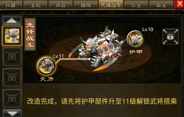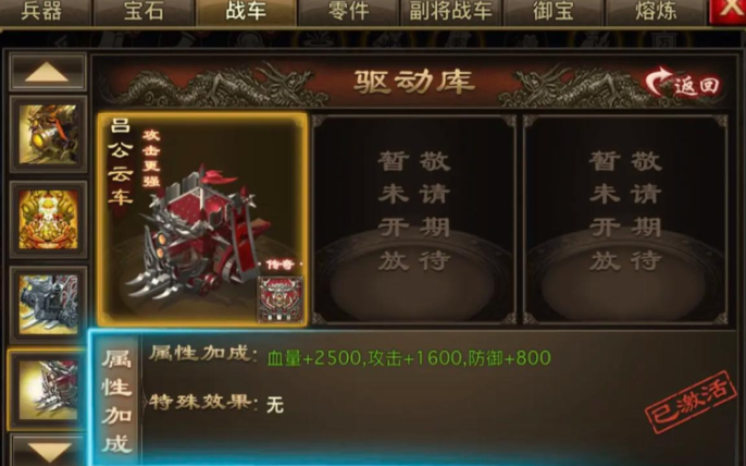 驱动选择需结合战车类型与武将搭配,攻城车侧重蚩尤驱动的高面板,防御车适合龙甲堡垒的防御增幅,辅助车则可利用冷焰先锋的控制效果。铁甲蛮牛与龙甲堡垒作为第二战车驱动,均专注属性增幅而无特效,适合作为过渡选择。随着驱动数量增加,玩家需注意驱动库的激活规则,优先保留符合当前战术体系的驱动组合,非活跃驱动仍能提供可观的次级属性加成。