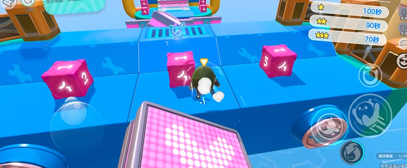 练习关卡地图时建议先观察地形和机关规律。每局开始前的准备时间别浪费,记住移动平台的轨迹、摆锤的摆动节奏,甚至地板变色预警的细节。多尝试不同路线,比如在管道类地图中滚动穿行可能比常规路线更快。遇到旋转障碍物时,找准时机比盲目冲刺更重要。