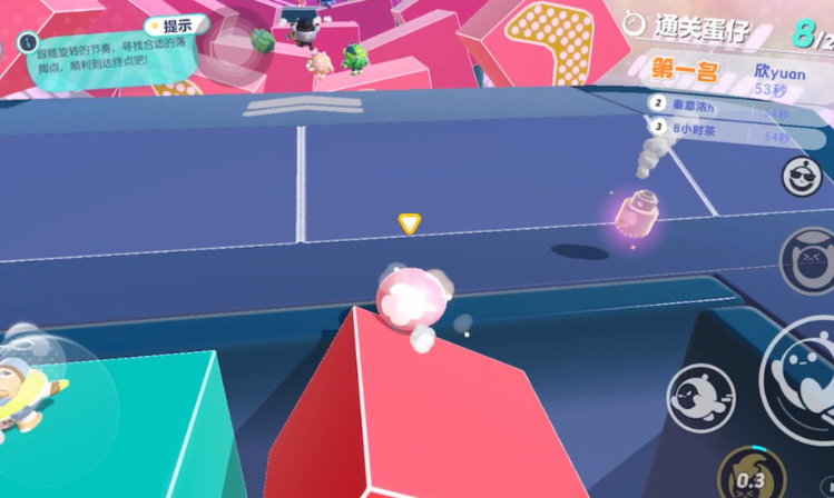 竞速图的高阶技巧在于路径优化与动作连贯性。餐盘上的甜点等直线地图需利用下坡加速,但连接处需提前减速防止坠落。果汁瀑布的层级结构要求精确控制跳跃力度,过猛易撞壁,不足则落水。甜蜜时钟的指针干扰可通过贴边移动规避,中央区域风险较高。长期训练形成肌肉记忆后,可尝试极限走位缩短通关时间。记忆类关卡需建立颜色或形状的快速识别体系。云音穿梭等地图的移动障碍物存在固定规律,优先选择边缘路线减少变向需求。危机列车的浮动平台需保持低频跳跃,利用滞空时间观察下一落点。扳手大战等对抗图中,保留道具应对后期混战比初期消耗更具战略价值。