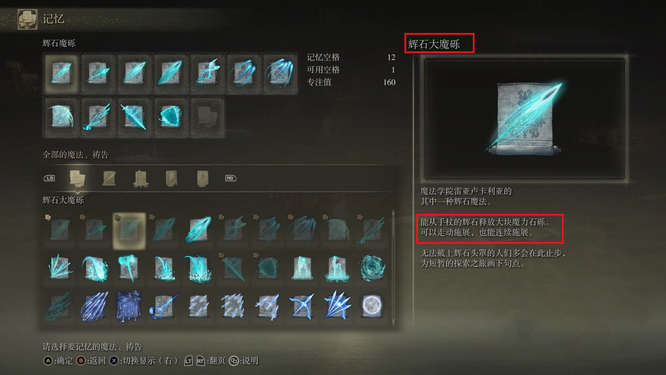 法师流派在凭借其独特的战斗方式和强大的远程输出能力,成为许多玩家的首选。智力系法术以高爆发和稳定输出见长,辉石大魔砾作为基础法术的强化版,蓝耗仅5点且射速极快,能有效压制普通杂兵并造成硬直,是清图效率最高的选择之一。陨石术对无盾大型BOSS具有显著削韧效果,配合陨石法杖可实现爆发性伤害,其追踪特性在开阔地形中能发挥最大优势。