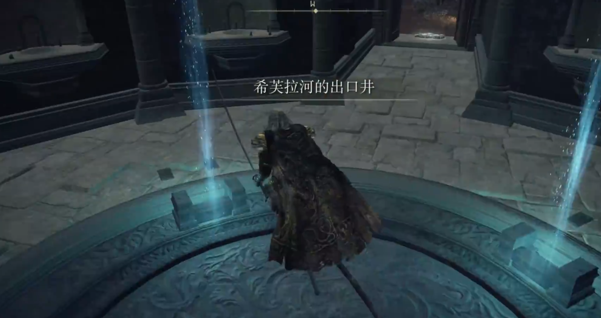 若选择另一条路线,可从宁姆格福的希芙拉河入口井进入,穿过建筑后乘坐升降机向上,抵达永恒之城下层。沿拱门前进,通过台阶和升降机到达希芙拉河出口井区域,可见大壶,其后方建筑即为竞技场。该路线需使用石剑钥匙激活升降机,途中需应对多个敌人,建议提前准备战斗装备。