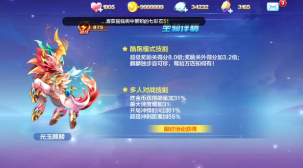 坐骑的选择对嫘祖的发挥也有显著影响。推荐搭配超级奖励关得分较高的坐骑,如光玉麒麟或契约守护者,这些坐骑能够进一步提升嫘祖在超级奖励关内的得分效率。部分觉醒后的坐骑还能额外增强嫘祖的技能效果,例如乘黄觉醒后可在超级奖励关内提供更高的得分加成。需坐骑的觉醒状态会直接影响关内外的得分比例,因此需根据实际需求调整搭配策略。