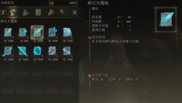 法术和祷告的选择要根据战斗风格灵活调整,常用魔法像辉石大魔砾、岩石球、月光剑都是泛用性很强的技能,激流则适合清理杂兵群。如果喜欢玩魔法剑士流派,记得多收集记忆石扩展法术槽位,这样能带更多技能应对不同敌人。护身符除了基础属性加成外,也可以考虑带提升施法速度的,毕竟法师最怕吟唱时被打断。装备强化千万别忽视,特别是武器升级后补正效果会明显提升。锻造石记得多探索地图收集,前期资源紧张时优先强化主力武器。