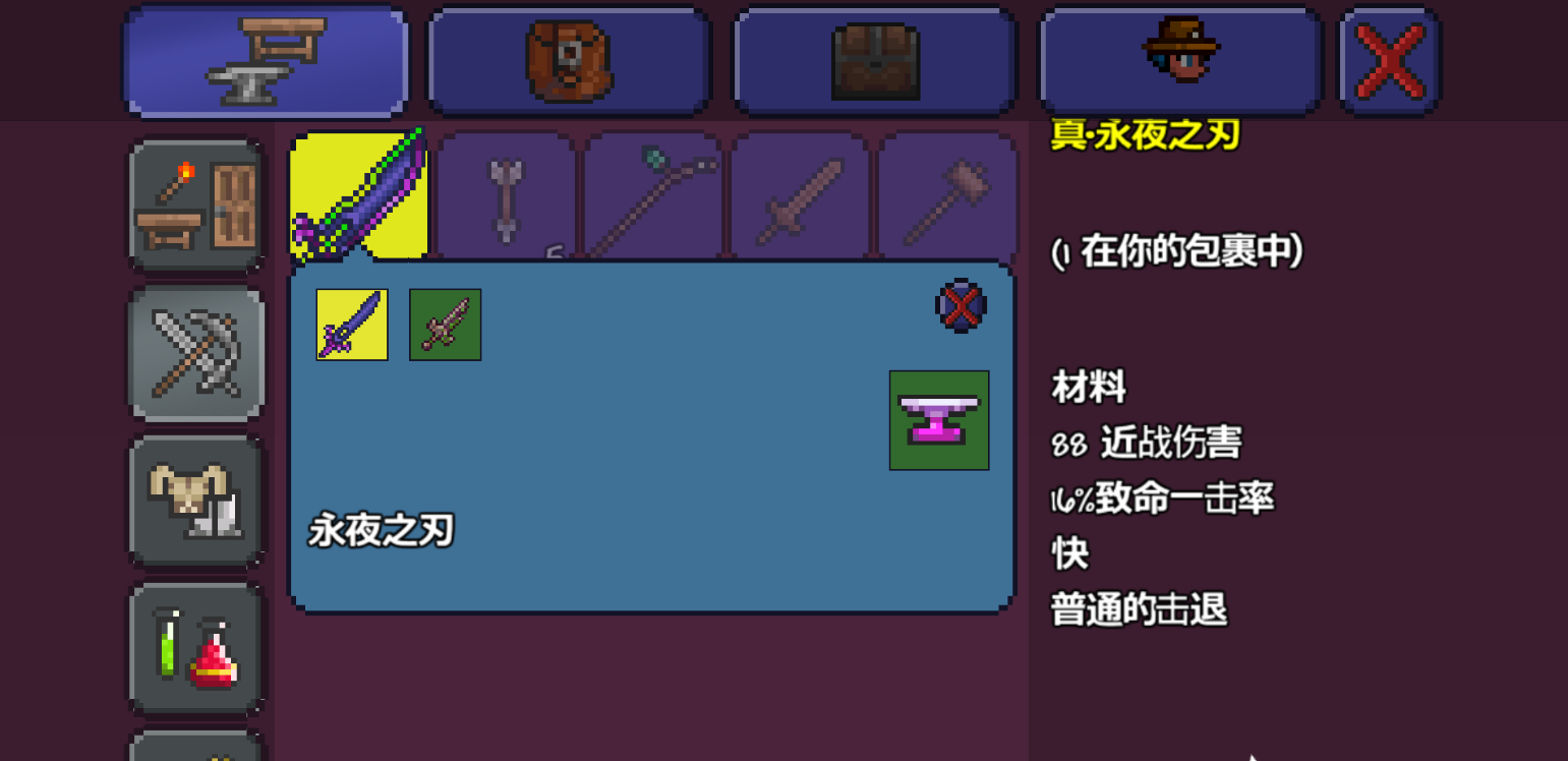 推荐使用狱炎套装或血腥套装,前者能提供更好的防御和后续过渡优势。武器选择上,永夜之刃适合快速清理触手,地狱之翼弓或凤凰爆破枪等远程武器则用于风筝战术。配饰方面,蜂巢背包、闪电靴和钴盾的组合能提升机动性和生存能力。务必将所有装备和饰品强化至+4防御,并准备足量蜜蜂手榴弹作为补充输出手段。