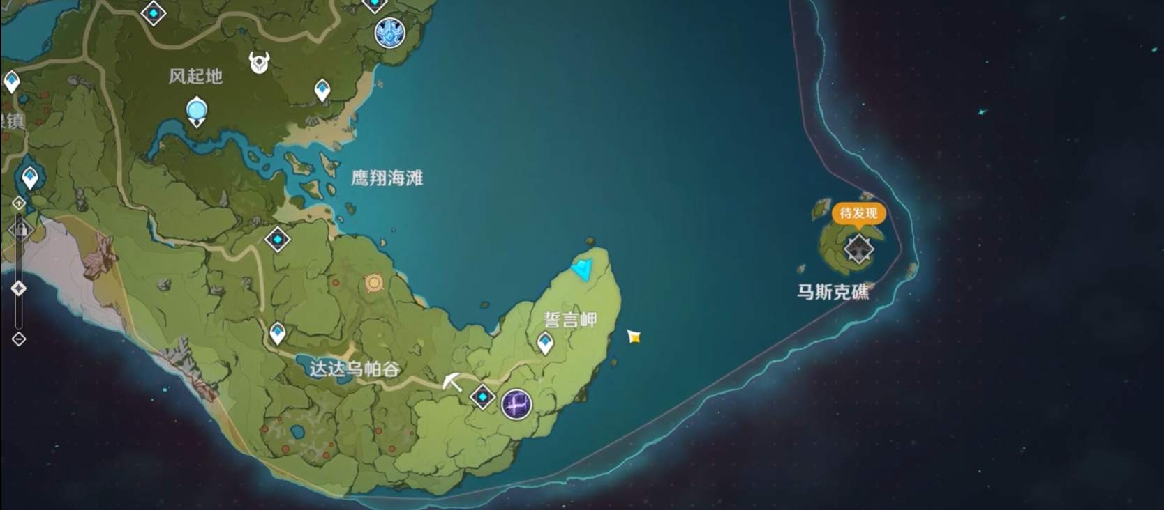 深境螺旋位于蒙德地区右下角的马斯克礁岛上,首次前往需要通过誓言岬的传送门解锁。玩家需达到冒险等级20级后,传送到誓言岬区域,在附近找到三个风仙灵并引导它们归位。仙灵归位后会激活风场,利用风场飞向空中的黑洞即可传送到马斯克礁。抵达后与深境螺旋的圆形传送门互动即可解锁该功能,后续可通过地图直接传送。