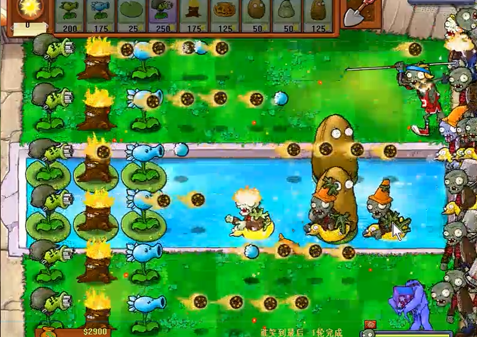 该关卡的核心策略在于阳光资源的精准分配与植物组合的协同效应。初始5000阳光需优先用于搭建基础攻击体系,推荐采用双发射手与火炬树桩的组合形成中距离火力网,或忧郁菇配合大蒜构建近战防御圈。每波结束后补充的250阳光应预留部分用于应急,如修补被破坏的坚果墙或补充樱桃炸弹等消耗品。水陆两栖区域需同步部署地刺与杨桃,确保全地图无防御死角。
