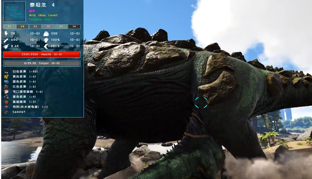 成功放倒泰坦龙后别急着庆祝,这家伙被驯服后就会开始绝食,最多活20小时。所以驯服后要抓紧时间利用它干活,比如拆敌方建筑或者搬运资源。它的平台鞍能建造移动堡垒,但记得别让它饿着肚子打架,血量掉太快可就亏大了。泰坦龙全图随机刷新,南方平原和素食岛附近遇到概率比较高。