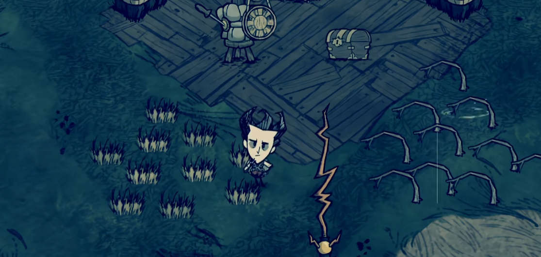 靠近猪王或牛群的地点也有独特优势。猪王附近能兑换金子,而牛群可以提供天然保护,尤其在猎狗袭击时能帮忙抵挡。不过要注意牛群在春天会发情,记得备好牛角帽避免被误伤。沼泽区域虽然危险,但能捡到触手和蜘蛛掉落的战利品,适合有一定经验的玩家。如果发现虫洞,尽量选靠近虫洞的位置建家,能大幅提升移动效率。