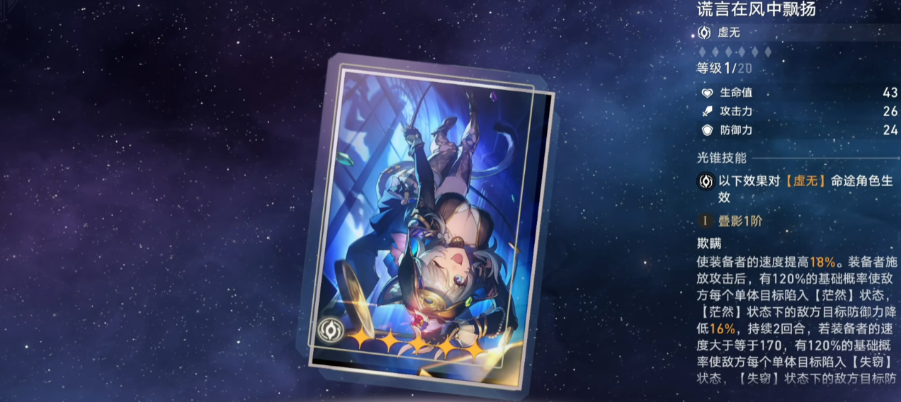 装备选择上,专武雨一直下是最优解,能提升效果命中和暴击率,但如果没有专武,活动送的新手任务开始前也是不错的选择,能提供大量效果命中并帮助回能。遗器推荐繁星璀璨的天才四件套搭配泛银河商业公司两件套,这样既能提高输出,又能增强辅助能力。词条方面,效果命中、速度和双暴是关键,鞋子最好选速度鞋,让她能更快出手给敌人挂debuff。