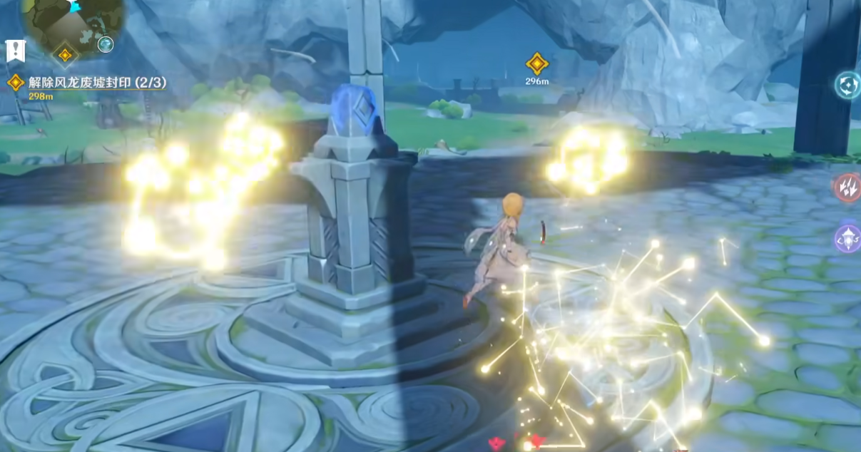 解谜时需优先观察光路走向,明确光线需要经过的路径。靠近镜面后,可交互旋转其朝向,确保光线能正确传递至下一镜面或接收装置。若镜面为水面状态,需用冰元素攻击将其转化为冰面镜片;反之,若需将冰面镜片恢复为水面镜片,则使用火元素攻击。特殊情况下,部分镜面需多次旋转或反复调整元素状态才能满足光路需求。