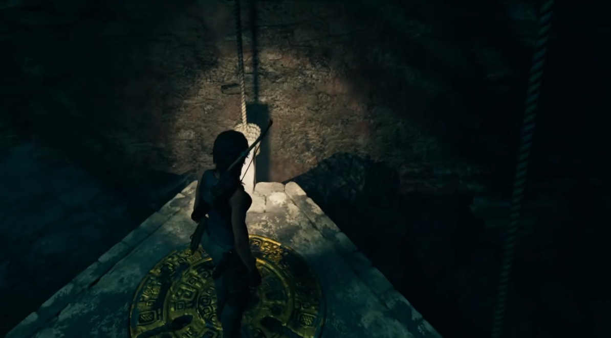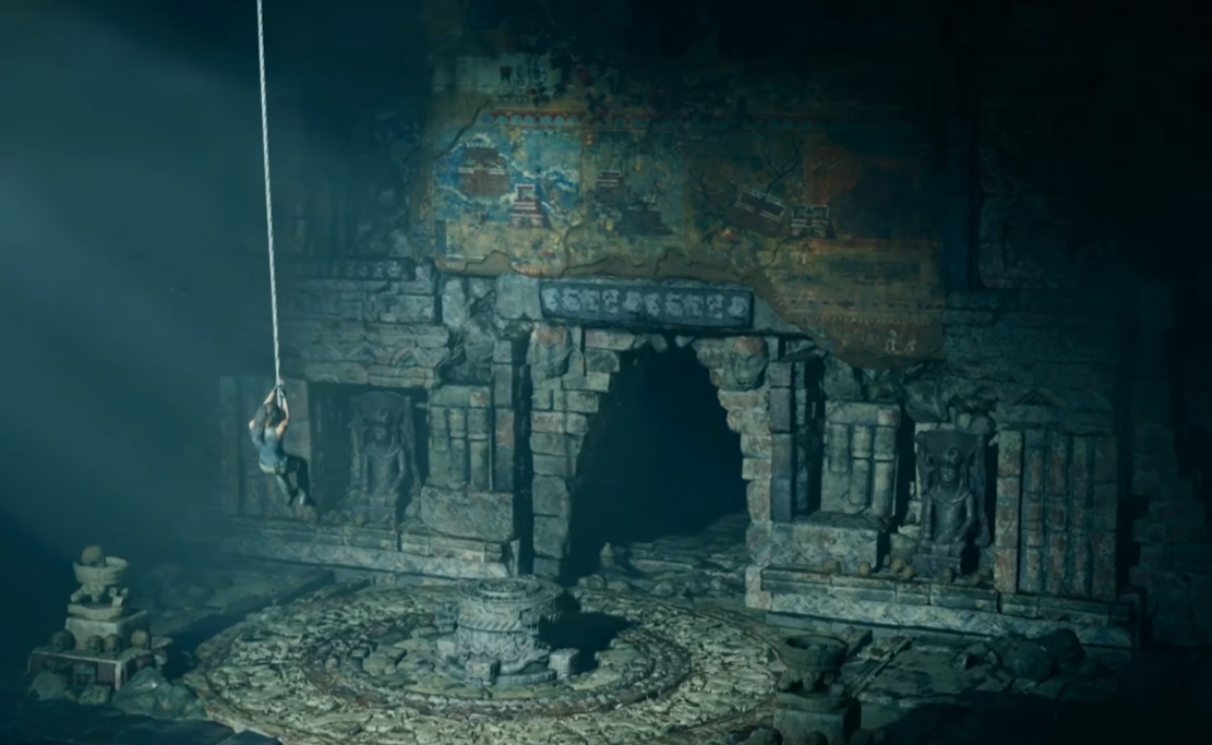 从右侧高台跳上被抬高的吊钟后,动作要快,立刻跳上绳梯往上爬。爬到顶后往右走,在路的尽头跳上岩壁,沿着凸起部分慢慢右移。到了悬崖末端,用钩斧降下去就能触发剧情,正式抵达金字塔顶端。这段操作需要一点耐心,尤其是跳吊钟和绳梯的时机,多练习几次就能流畅完成。