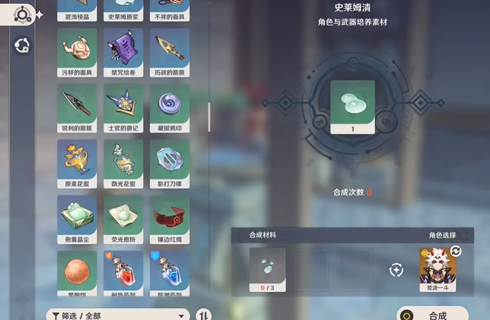 材料准备完成后,前往任意主城的合成台进行操作。蒙德城的蒂玛乌斯或璃月港的炼金台均可使用。打开合成界面后选择史莱姆清选项,系统会自动检测背包中的史莱姆凝液数量。确认材料充足后点击合成按钮,无需等待时间即可完成。需注意,合成台位置可能因游戏版本调整而变动,但通常位于主城显眼处,如蒙德教堂附近或璃月港的商铺旁。