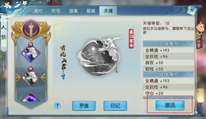 鬼道作为输出型职业,天禄配置应以穿透为主、韧性为辅。优先将穿透属性提升至2000点基准线,确保能有效突破主流职业的防御加成;同时保持韧性在1500-1800区间,避免被高穿透职业轻易破防。破势与守心作为新天禄属性,建议采用平衡发展策略,既保证输出强度又维持基础生存能力。天禄罗盘摆放需遵循内圈两个、外圈上下两个的布局原则,确保属性激活最大化。