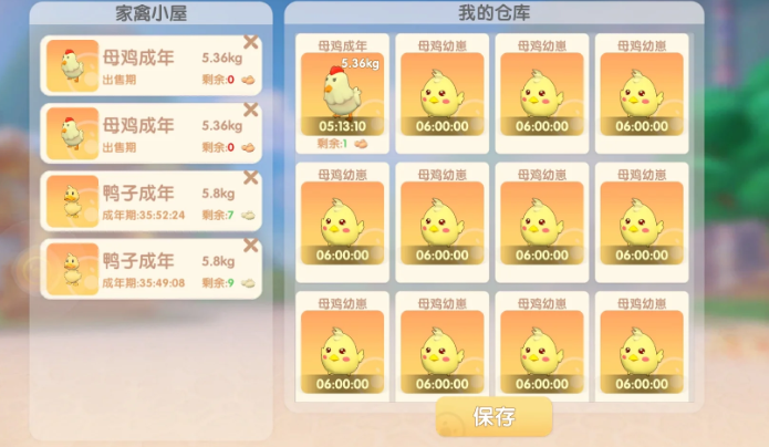 平时饲养家禽的时候,记得要经常让它们出去透透气。白天放出去活动活动,晚上再摇铃叫回来,这样它们心情好才会多多下蛋。饲料盆里要常备尤尤商店买来的专用饲料,吃饱喝足的家禽们才会乖乖听话。要是遇到下雨天,最好早点摇铃让它们回屋,淋雨生病可就不好啦。