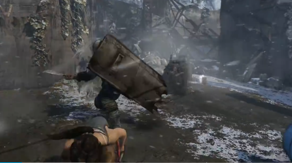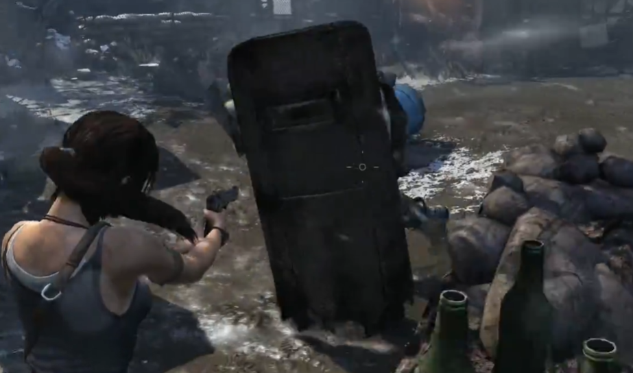 利用场景中的掩体或烟雾弹等道具干扰视线,快速移动到盾牌兵侧面或背后。这个角度下盾牌无法提供防护,使用近战武器或手枪都能轻松解决。需部分高级盾牌兵会快速转身防御,因此移动时要把握时机。环境中的油桶、悬挂物等可互动元素也能创造优势,引爆油桶可以直接炸翻盾牌兵,而射击绳索使重物坠落同样能造成可观伤害。