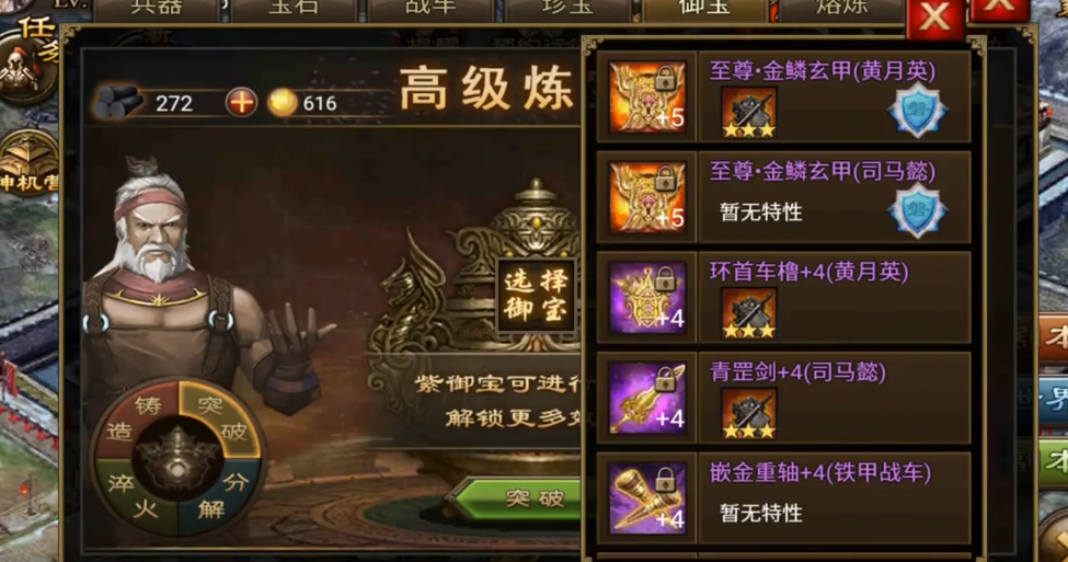 装备方面,优先提升攻击和血量属性,因为敌方战法伤害很高,如果血量不够很容易被秒。御宝推荐带至尊级别的,至少要有几件紫的,能大幅提升生存能力。神石选择4阶以上的,尤其是增加攻击和防御的,效果会更好。战车改造尽量完成2到3个,这样在面对敌方高护甲单位时不会太吃力。如果条件允许,可以弄个二星白虎战兽,开启三维加成,但这不是必须的,没资源的话专注战车和御宝就行。