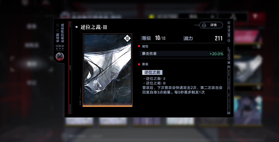 逆位之裁是游戏中一套备受玩家关注的强力烙印套装,以其独特的机制在战斗中带来颠覆性的表现。这套烙印的核心效果是每隔五秒,在角色进行普通攻击后,会迅速追加两次额外普通攻击,其中第二次攻击能够回复三点能量,大幅提升了能量的回复效率。它还能提供显著的暴击伤害加成,满级时增加20%,使得装备它的角色在输出和续航方面都获得质的飞跃。