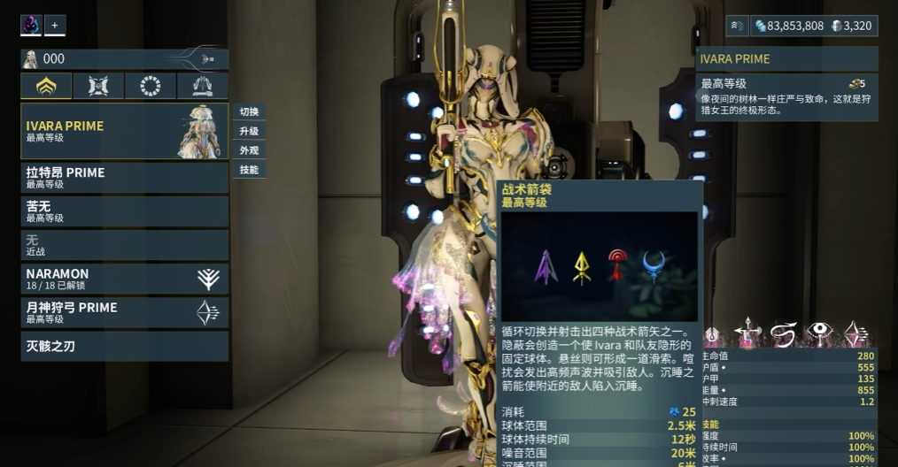 Ivara因其标志性的武器被玩家们亲切地称为弓妹,她是一套以隐身潜入为核心主题的战甲。其攻击与防御的基础能力相对较弱,但专长于使用隐身技能无声地完成任务,在需要潜行的场合表现极为出色。弓妹的技能组设计精巧,围绕弓箭与潜行展开,被动技能允许她在战线上保持隐身,为接下来的行动提供天然掩护。要玩转这位神弓游侠,必须深入理解她每一个技能的效果、消耗与联动方式,这决定了她是战场上隐匿的猎手还是笨拙的标靶。